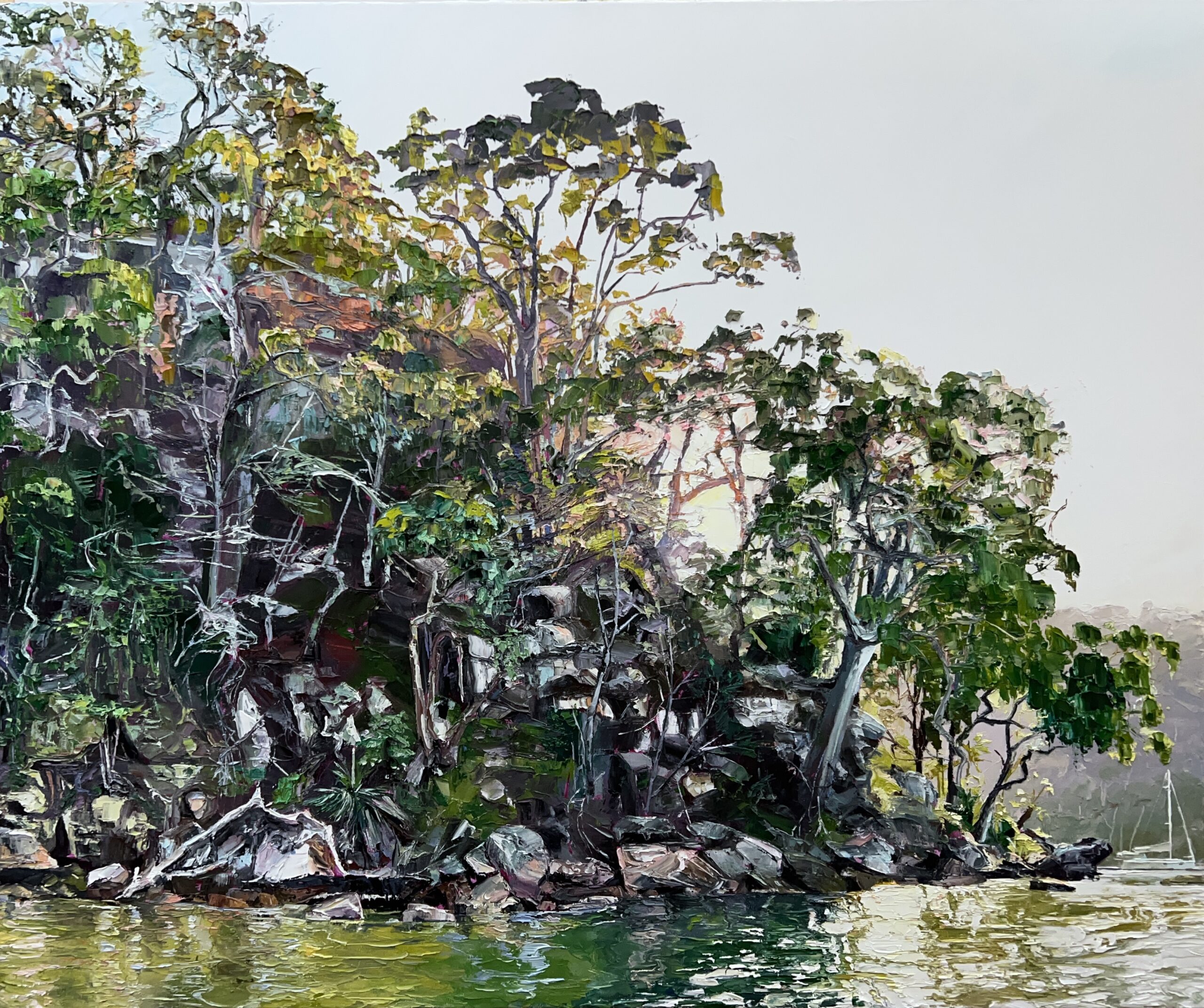 Rock Tree Flow Series arises from observing our remarkable Australian native trees. Many grow direct from stone, rooted in narrow fissures or perched on sloping rock shelves, they extend outward over the water with improbable grace, precariously balanced, defying gravity.